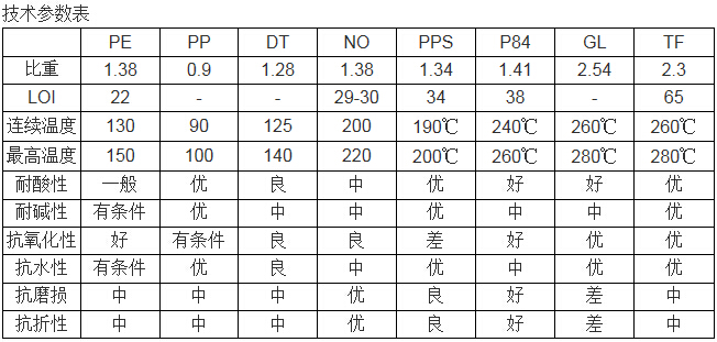 編織方式 針刺氈 性能 耐酸,耐堿,耐高溫,耐低溫,防火,防水,防靜電