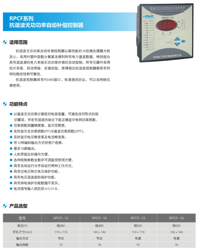 RPCF系列抗諧無功功率自動補(bǔ)償控制器