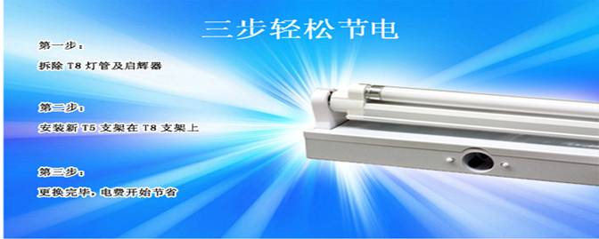 附注:T8轉T5節(jié)能支架有標準型和帶反光罩型,帶反光罩型在原有基礎上照度可提高20%以上;以上三種產品與普通超級節(jié)能燈技術參數(shù)、應用范圍一樣,分為28w、21w、14w替代原T8燈具40w、30w、20w。