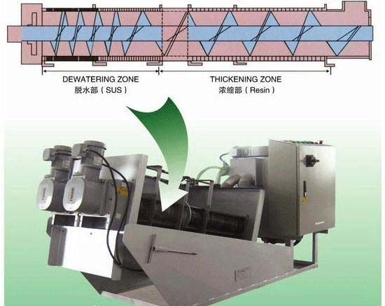 1、濃縮:當(dāng)螺旋推動軸轉(zhuǎn)動時(shí),設(shè)在推動軸外圍的多重固活疊片相對移動,在重力作用下,水從相對移動的疊片間隙中濾出,實(shí)現(xiàn)快速濃縮。