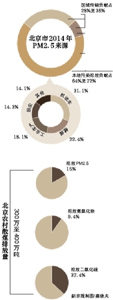 環(huán)保專家彭應(yīng)登介紹,最新的北京農(nóng)村散煤排放量顯示,這300萬至400萬噸散煤,排放的PM2.5占全市的15%,氮氧化物占全市的9.4%,而排放的二氧化硫占全市的37.4%。