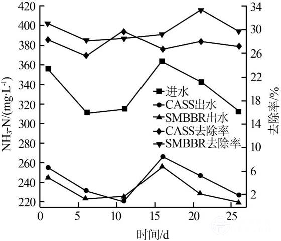 圖3-CASS和SMBBR對(duì)NH3-N的去除效果