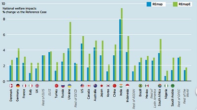 許多國(guó)家,包括歐盟國(guó)家、日本、印度和韓國(guó)還將從礦物燃料的減少進(jìn)口中獲益。然而這樣的一種經(jīng)濟(jì)轉(zhuǎn)變對(duì)石油生產(chǎn)國(guó),如俄羅斯、委內(nèi)瑞拉和尼日利亞等未必會(huì)造成傷害。國(guó)際可再生能源署呼吁,一個(gè)更多樣化的經(jīng)濟(jì)同樣會(huì)成為產(chǎn)油國(guó)家的一個(gè)長(zhǎng)期獲益的方法。