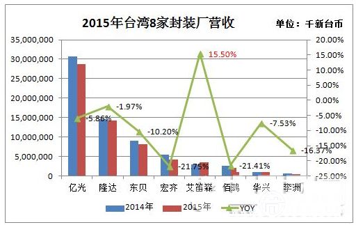 相對(duì)于芯片端,2015年臺(tái)灣封裝企業(yè)營收也是半斤八兩。從LED網(wǎng)統(tǒng)計(jì)的臺(tái)灣8家LED封裝廠的營收來看,艾笛森相比其他7家企業(yè),可謂是一支獨(dú)秀,在2015年實(shí)現(xiàn)了15.5%的業(yè)績?cè)鲩L。