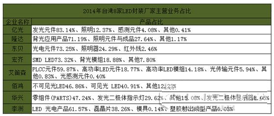從2014年的主營業(yè)務(wù)來看,晶電與華上兩家的產(chǎn)品相似度很高,但為何下滑幅度差距卻是如此明顯,這或許不僅僅因?yàn)榇箨慙ED供應(yīng)鏈的沖擊,還跟臺(tái)灣本土企業(yè)的競爭以及芯片供應(yīng)鏈下端的企業(yè)生存現(xiàn)狀有關(guān)。