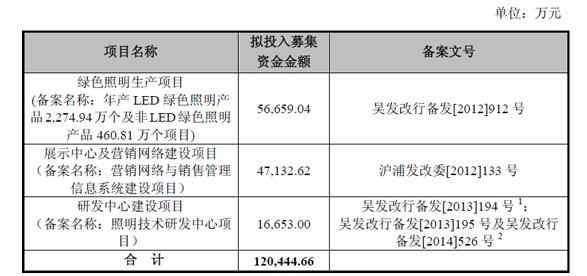 歐普照明的IPO募集資金投向主要為L(zhǎng)ED綠色照明生產(chǎn)項(xiàng)目、研發(fā)中心和展示中心及營(yíng)銷(xiāo)網(wǎng)絡(luò)建設(shè)。其中照明生產(chǎn)項(xiàng)目擬投入5.67億元。