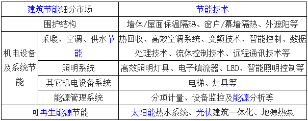 建筑節(jié)能包括對新建建筑的節(jié)能設(shè)計和對既有建筑的節(jié)能改造, 涉及圍護(hù)結(jié)構(gòu)節(jié)能、機(jī)電設(shè)備及系統(tǒng)節(jié)能(采暖、空調(diào)、供水、照明、其他機(jī)電系統(tǒng)等)以及可再生能源節(jié)能等領(lǐng)域。