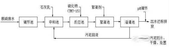 圖1典型脫硫廢水化學(xué)沉淀處理工藝路程