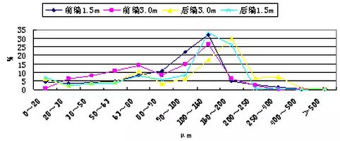 圖3-5 A/B側(cè)SCR入口飛灰顆粒度分布圖