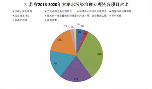 2013年《江蘇省太湖流域水環(huán)境綜合治理實施方案》修編后,專項資金政策分為截至2015年的近期投資和截至2020年的遠期投資,共計943.07億元。投資項目包括飲用水安全項目、點源污染治理、城鎮(zhèn)污水處理和垃圾處理、面源污染治理、生態(tài)修復、資源再利用、引排通道工程、河網綜合治理、節(jié)水減排、水環(huán)境監(jiān)測預警系統(tǒng)、應急能力建設。