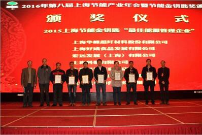 為表彰對節(jié)能產(chǎn)業(yè)做出卓越成績的企業(yè)、個人及機構(gòu),由上海應(yīng)用技術(shù)大學(xué)副校長陳東輝和上海市節(jié)能工程技術(shù)協(xié)會會長曹偉武為獲得2015年度上海節(jié)能金鑰匙獎的企業(yè)和個人頒發(fā)包含“最佳貢獻人物”、“節(jié)能技術(shù)創(chuàng)新企業(yè)”、“最佳能源管理企業(yè)”、“最佳‘互聯(lián)網(wǎng)+’企業(yè)”、“最佳客戶服務(wù)企業(yè)”等獎項證書,同時上海市節(jié)能工程技術(shù)協(xié)會秘書長陳宏為首批獲得上海市節(jié)能工程技術(shù)等級甲級資質(zhì)的企業(yè)頒發(fā)證書。
