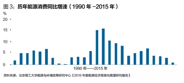 從2012年開始,中國能源消費(fèi)增速就屢創(chuàng)新低。2015年的能源增速之低,出乎所有人的意料。去年全國能源消費(fèi)總量43億噸標(biāo)煤,同比增長不足1%,創(chuàng)下了自1999年以來的最低增速。