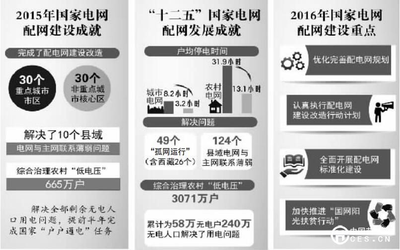 2016年,國家電網(wǎng)公司將按照“統(tǒng)一規(guī)劃、統(tǒng)一標(biāo)準(zhǔn)、安全可靠、堅固耐用”的原則,深入貫徹資產(chǎn)全壽命周期管理理念,優(yōu)化完善電網(wǎng)規(guī)劃,并認(rèn)真執(zhí)行配電網(wǎng)建設(shè)改造行動計劃,加快實施農(nóng)網(wǎng)改造升級工程,有效解決農(nóng)網(wǎng)“低電壓”、“卡脖子”、動力電不足等問題,上半年完成2015年國家新增中西部農(nóng)網(wǎng)項目,年內(nèi)完成新增東部七省(市)農(nóng)網(wǎng)和城鎮(zhèn)配電網(wǎng)工程。國家電網(wǎng)公司還將全面開展配電網(wǎng)標(biāo)準(zhǔn)化建設(shè),依據(jù)規(guī)劃設(shè)計導(dǎo)則,按照典型目標(biāo)網(wǎng)架要求,優(yōu)化完善配電網(wǎng)結(jié)構(gòu),提高線路互倒互帶和環(huán)網(wǎng)供電能力。