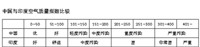 2015年,印度開始發(fā)布10個城市的空氣質量指數(AQI)空氣指數,并在網上提供實時數據。印度的空氣質量分為好(0~50)、舒適(51~100)、中度污染 (101~200)、差(201~300)、非常差(301~400)、嚴重(401~500)六類。