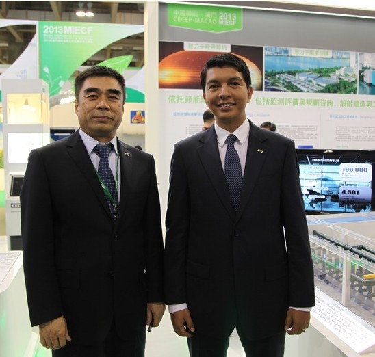 中國節(jié)能的展位在“專貴參展商”區(qū)域,展位號為H52,面積108平米,是此次展會占地面積最大的參展單位之一。中國節(jié)能帶著最新的節(jié)能環(huán)??萍汲晒?,展示了在規(guī)劃咨詢、勘查設(shè)計、工程建設(shè)、清潔能源、建筑節(jié)能、環(huán)境保護(hù)等領(lǐng)域的服務(wù)和產(chǎn)品,澳門特首崔世安、馬達(dá)加斯加過渡政府總統(tǒng)拉喬利納等重要領(lǐng)導(dǎo)特意到中國節(jié)能展臺參觀,并詳細(xì)了解中國節(jié)能的綜合實力。