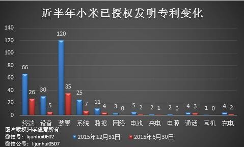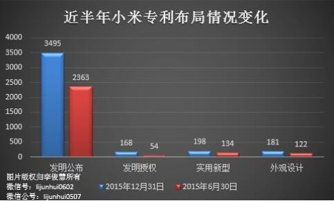 截止2015年12月31日,小米已累計(jì)獲得專利授權(quán)中,包括168件發(fā)明專利、198件實(shí)用新型專利和181件外觀設(shè)計(jì)專利。其中,這三項(xiàng)指標(biāo)在近半年內(nèi)都有較大幅度的增長(zhǎng)。