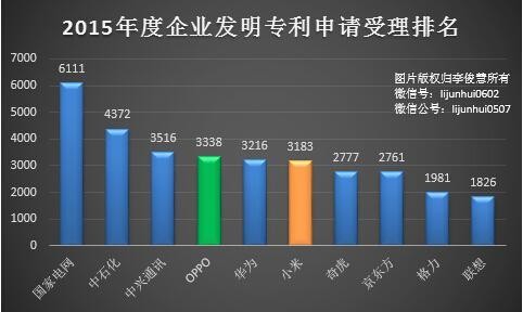 但是,這并不妨礙小米首度進(jìn)入國(guó)家知識(shí)產(chǎn)權(quán)局公布的企業(yè)發(fā)明專利申請(qǐng)受理排名前十之列。在2015年企業(yè)發(fā)明專利申請(qǐng)受理排行榜中,小米超過(guò)京東方、奇虎、格力和聯(lián)想,位列第六。