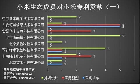 此外,江蘇紫米、上海純米、安徽華米、北京智米、深圳綠米等小米生態(tài)成員對(duì)小米的專利組成均有不同程度的貢獻(xiàn)。