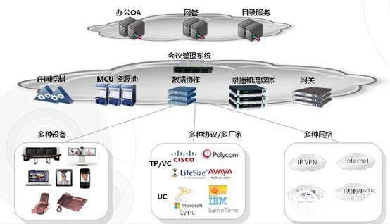 傳統(tǒng)視訊系統(tǒng)一般采用樹狀組網(wǎng),MCU和終端存在比較固定的父子關(guān)系,受限于MCU接入容量等多個問題,架構(gòu)上各子系統(tǒng)一般都完全獨(dú)立的。雖然MCU級聯(lián)等方案解決了音視頻互聯(lián)互通問題,但是統(tǒng)一管理維護(hù)的問題無法解決,在現(xiàn)網(wǎng)存在多個系統(tǒng)的情況下,用戶在維護(hù)、管理上投入過多人力,造成人力和資源的浪費(fèi)。為解決這一問題,華為公司借鑒領(lǐng)先的云計(jì)算技術(shù),提出了創(chuàng)新的視頻云資源平臺的建設(shè)思路,以滿足建設(shè)統(tǒng)一平臺、多接入方式靈活、統(tǒng)一管理的視頻網(wǎng)絡(luò)的要求。