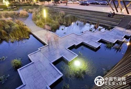 在城市雨水利用處理技術(shù)應(yīng)用上,強(qiáng)調(diào)非工程的生態(tài)技術(shù)開發(fā)與綜合運(yùn)用。在城市雨水資源管理和雨水徑流污染控制第二代“最佳管理方案 (Best Management Practice, BMP) ”中強(qiáng)調(diào)與植物、綠地、水體等自然條件和景觀結(jié)合的生態(tài)設(shè)計(jì),如植被緩沖帶、植物淺溝、濕地等,大量應(yīng)用由屋頂蓄水或入滲池、井、草地、透水地面組成的地表回灌系統(tǒng),以獲得環(huán)境、生態(tài)、景觀等多重效益。如20世紀(jì)90年代提出的“低沖擊開發(fā)”雨水管理技術(shù),通過分散的、均勻分布的、小規(guī)模的雨水源頭控制機(jī)制,用滲透、過濾、存儲(chǔ)、蒸發(fā),以及在接近源頭的地方截取徑流等設(shè)計(jì)技術(shù),來實(shí)現(xiàn)對(duì)暴雨所產(chǎn)生的徑流和污染的控制,緩解或修復(fù)開發(fā)造成的難以避免的水文擾動(dòng),減少開發(fā)行為活動(dòng)對(duì)場(chǎng)地水文狀況的沖擊。