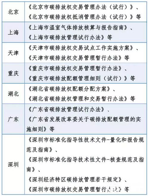2011年10月29日,國(guó)家發(fā)展改革委辦公廳發(fā)布《關(guān)于開(kāi)展碳排放權(quán)交易試點(diǎn)工作的通知》,正式批準(zhǔn)北京、上海、天津、重慶、湖北、廣東和深圳等七省市開(kāi)展碳交易試點(diǎn)工作。在此基礎(chǔ)上,各試點(diǎn)地方政府分別發(fā)布各地區(qū)試點(diǎn)工作相關(guān)政策性文件,具體如下:
