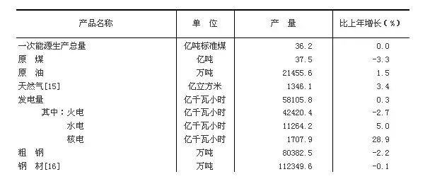 2015年原煤等主要工業(yè)產(chǎn)品產(chǎn)量及其增長速度
