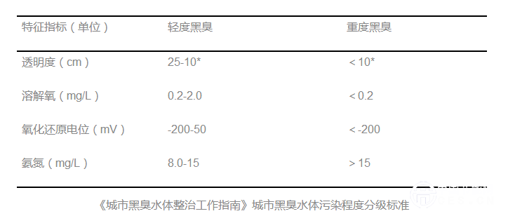 《城市黑臭水體整治工作指南》城市黑臭水體污染程度分級標準