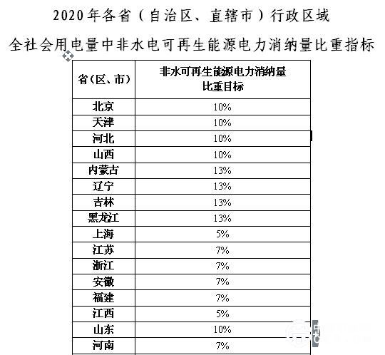 二、建立明確的可再生能源開(kāi)發(fā)利用目標(biāo)。國(guó)家能源局根據(jù)各地區(qū)可再生能源資源狀況和能源消費(fèi)水平,依據(jù)全國(guó)可再生能源開(kāi)發(fā)利用中長(zhǎng)期總量目標(biāo),制定各省(區(qū)、市)能源消費(fèi)總量中的可再生能源比重目標(biāo)和全社會(huì)用電量中的非水電可再生能源電量比重指標(biāo),并予公布。鼓勵(lì)各省(區(qū)、市)能源主管部門制定本地區(qū)更高的可再生能源利用目標(biāo)。
