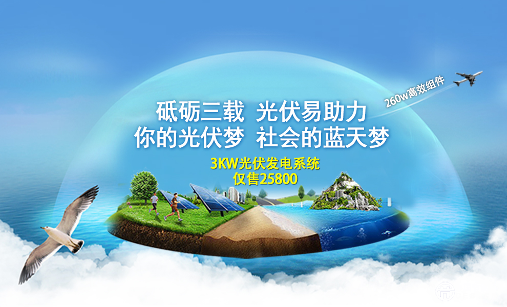 為慶祝光伏易成立三周年,現(xiàn)在起,只需要25800元就可以用上家庭太陽能光伏電站!享受最清潔環(huán)保的電,不用交電費,每個月還可以拿補貼。電站裝機容量3KW,全部采用260W高效太陽能光伏組件,有效節(jié)省安裝空間,光電轉(zhuǎn)換率更高。光伏易將提供從設(shè)計安裝、并網(wǎng)支持到運營維護(hù)的一站式服務(wù),免費質(zhì)保25年,助力千家萬戶輕松實現(xiàn)“光伏夢”。