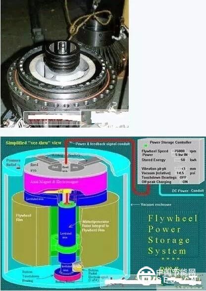 “飛輪”這一儲能元件,已被人們利用了數(shù)千年,從古老的紡車,到工業(yè)革命時的蒸汽機,以往主要是利用它的慣性來均衡轉(zhuǎn)速和闖過“死點”,由于它們的工作周期都很短,每旋轉(zhuǎn)一周時間不足一秒鐘,在這樣短的時間內(nèi),飛輪的能耗是可以忽略的?,F(xiàn)在想利用飛輪來均衡周期長達12~24小時的能量,飛輪本身的能耗就變得非常突出了。能耗主要來自軸承摩擦和空氣阻力。人們曾通過改變軸承結(jié)構(gòu),如變滑動軸承為滾動軸承、液體動壓軸承、氣體動壓軸承等來減小軸承摩擦力,通過抽真空的辦法來減小空氣阻力,軸承摩擦系數(shù)已小到10-3。即使如此微小,飛輪所儲的能量在一天之內(nèi)仍有25%被損失,仍不能滿足高效儲能的要求。再一個問題是常規(guī)的飛輪是由鋼(或鑄鐵)制成的,儲能有限。例如,欲使一個發(fā)電力為100萬千瓦的電廠均衡發(fā)電,儲能輪需用鋼材150萬噸!另外要完成電能機械能的轉(zhuǎn)換,還需要一套復雜的電力電子裝置,因而飛輪儲能方法一直未能得到廣泛的應用。