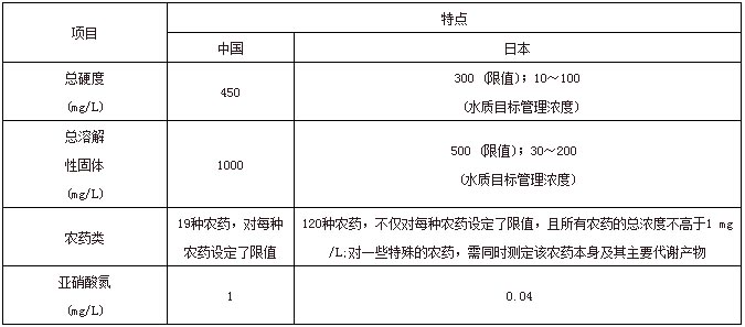(1)與中國(guó)現(xiàn)行的生活飲用水衛(wèi)生標(biāo)準(zhǔn)相比,日本在總硬度,總?cè)芙庑怨腆w,以及農(nóng)藥等指標(biāo)上要求更為嚴(yán)格,也更科學(xué)合理。
