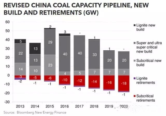 研究過(guò)該指導(dǎo)意見(jiàn)后,我們預(yù)測(cè)中國(guó)未來(lái)5年內(nèi)退役的煤電機(jī)組總量可達(dá)113GW,而總煤電裝機(jī)量將在2020年達(dá)到峰值997GW。在新舉措出臺(tái)前我們的預(yù)測(cè)是中國(guó)未來(lái)5年退役的煤電機(jī)組總量可達(dá)160GW,而總煤電裝機(jī)總量將在2020年達(dá)到峰值1041GW。