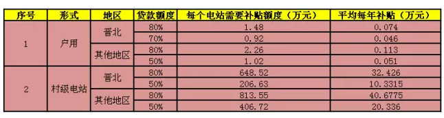 政府對光伏扶貧的電站不僅包括貼息,也可以采用對稅收進行減免或在效益不好的情況下直接補貼電站等多種形式。故在不貼息的條件下,測算需要補貼的額度,見下表所示: