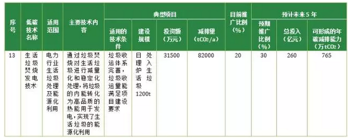 2014年8月,國家發(fā)改委將生活垃圾焚燒發(fā)電技術(shù)列入《國家重點(diǎn)推廣的低碳技術(shù)名錄》,并預(yù)測在全國范圍內(nèi)推廣該技術(shù)后的第五年末,替代化石燃料可形成的年碳減排量為765萬噸CO2。