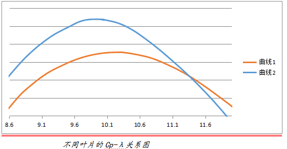 下面的圖中,橫坐標(biāo)是葉尖速λ,縱坐標(biāo)是Cp,圖中給出了兩個種Cp-λ的曲線,可以看到,曲線1的理論Cp雖然不高,但由于Cp相對λ的變化,其變化較小,這樣的葉片Cp設(shè)計對控制系統(tǒng)的要求就沒有那么高,因為即便風(fēng)速變化引起λ變化,Cp波動也不大,但這樣帶來好處的同時也犧牲了讓Cp在設(shè)計上能夠更高的機會。而有些葉片,Cp和λ的關(guān)系圖形可以更尖更高(請見下圖曲線2),Cp在λ很狹窄的范圍內(nèi)最大,這要求控制系統(tǒng)要更加靈敏智能,可以動態(tài)自適應(yīng),能夠通過有效的控制λ的變化使得Cp可以穩(wěn)定在一個較小的范圍而沒有較大的跌落。所以,葉片和控制系統(tǒng)的不同都會對實際的發(fā)電效率有很大影響,這些都會通過動態(tài)功率曲線可以反映出來。以前,控制技術(shù)不先進,風(fēng)機的智能化程度不高,只好用犧牲葉片Cp的最大值,來換取控制的難度降低,但隨著對Cp最大值的追求,會有更陡峭的Cp-λ曲線設(shè)計的葉片出現(xiàn),可問題是要獲取這樣的更高理論Cp的發(fā)電量優(yōu)勢,控制系統(tǒng)的難度就顯著增大了,特別是隨著葉片風(fēng)輪的加大,這對控制和風(fēng)機智能化的挑戰(zhàn)會越來越大。