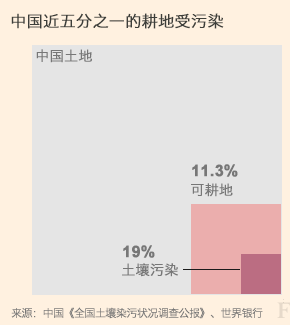 2005年到2013年,環(huán)境保護部和國土資源部以預(yù)算10億元人民幣,首次啟動全國土地污染現(xiàn)況調(diào)查。在調(diào)查取樣的630萬平方公里面積中,土壤污染超標(biāo)率為16.1%,耕地土壤點位超標(biāo)率為19.4%,整體情況“不容樂觀”。