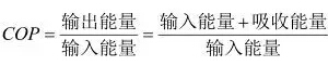 其中蒸汽壓縮熱力學循環(huán)系統(tǒng)是將低品位、分散的尾氣廢熱資源回收制取中高溫熱水的重要裝置,采用蒸汽壓縮熱力學循環(huán)系統(tǒng)裝置可以有效地減少石化能源的消耗。蒸汽壓縮熱力學循環(huán)系統(tǒng)制熱的能效比(COP值)計算公式為: