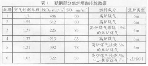 焦?fàn)t是冶金企業(yè)中造成大氣污染最嚴(yán)重的設(shè)備之一。焦?fàn)t排放的污染物成分復(fù)雜,含有一氧化碳、二氧化碳、硫化氫、氰化氫、氮氧化物、二氧化硫、殘氨、酚以及煤塵、焦油等。本文涉及的污染物主要是氮氧化物以及二氧化硫。