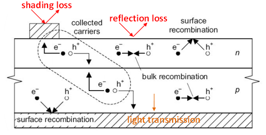 (1)光學(xué)損失,包括電池前表面反射損失、正面電極的遮光損失以及長波段的非吸收透射損失。