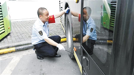 于是,只要回到站場,他就天天觀察車前輪。最后發(fā)現(xiàn),只要是正常前輪胎壓地面一定是三個“花紋”(公交車輪胎的一種特性)。如果少了一個花紋,就是缺氣,多一個就是氣壓太足,要放氣,不然影響安全。