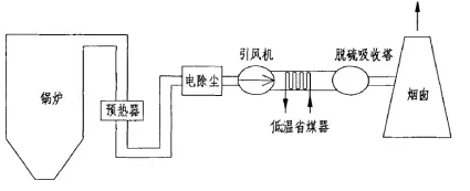 600MW機(jī)組低溫省煤器系統(tǒng)布置在電袋除塵器后的水平煙道內(nèi),鋼架支撐,外部設(shè)有檢修平臺(tái)。循環(huán)水取自凝結(jié)水的低加系統(tǒng),與#7、8低加系統(tǒng)并聯(lián)。取水點(diǎn)在#8低加進(jìn)口和#7低加的出口,2路水匯合后做為低溫省煤器的進(jìn)水,凝結(jié)水加熱后返回到#6低加的進(jìn)口。低溫省煤器換熱器分左、右側(cè)各4組模塊上下布置,共8組。低溫正常控制省煤器入口水溫:≥63℃,低溫省煤器出口排煙溫度:95±2℃。