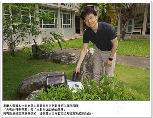 高應(yīng)大電機(jī)工程系教授李孝貽率光動(dòng)能電力實(shí)驗(yàn)室?guī)熒鷪F(tuán)隊(duì)以自行研發(fā)的這項(xiàng)防蚊利器為傲。