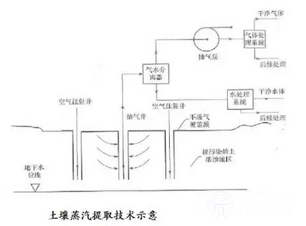 土壤蒸汽浸提修復(fù)技術(shù)是在污染土壤內(nèi)引入清潔的空氣產(chǎn)生驅(qū)動力,利用土壤固相、液相和氣相間的濃度梯度,在氣壓降低的情況下,將其轉(zhuǎn)化為氣態(tài)的污染物排出土壤的過程。