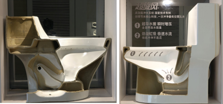 傳統(tǒng)馬桶(左)與超旋風(fēng)(右)整體剖面對(duì)比