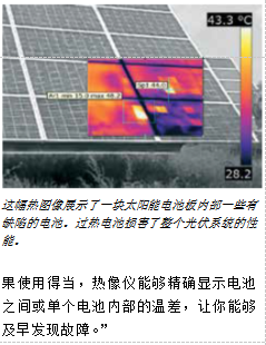 Ermoni表示:“FLIRSystems的紅外熱像儀是檢查太陽(yáng)能電池板的理想工具。檢查方法是非毀滅性和非侵入性的。你可以使用熱像儀檢查負(fù)載狀態(tài)下的太陽(yáng)能電池板,因此不需要關(guān)閉系統(tǒng)。如