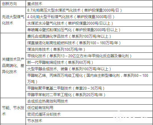 表三:現(xiàn)代煤化工技術(shù)裝備創(chuàng)新重點(diǎn)