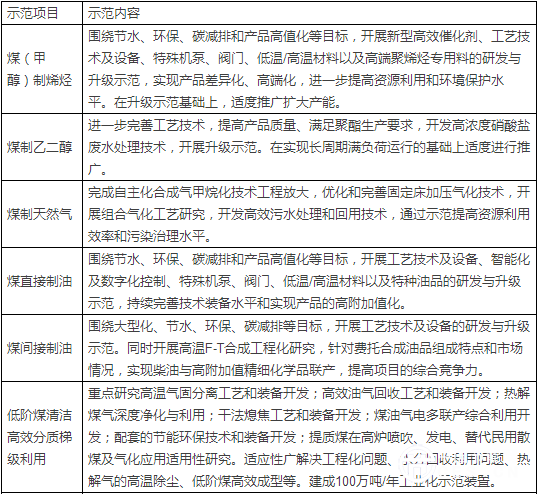 表二:現(xiàn)代煤化工升級(jí)示范重點(diǎn)
