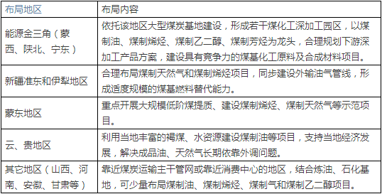 表一:重點(diǎn)發(fā)展的現(xiàn)代煤化工產(chǎn)業(yè)基地