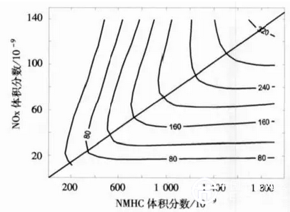 因此,當(dāng)二氧化硫超標(biāo),削減其排放就能達到減少污染的目的。但是,這種方法不能直接用于對臭氧的控制。學(xué)界認(rèn)為,臭氧治理需利用EKMA曲線,通過控制臭氧前體物NOx和VOCs來控制臭氧。