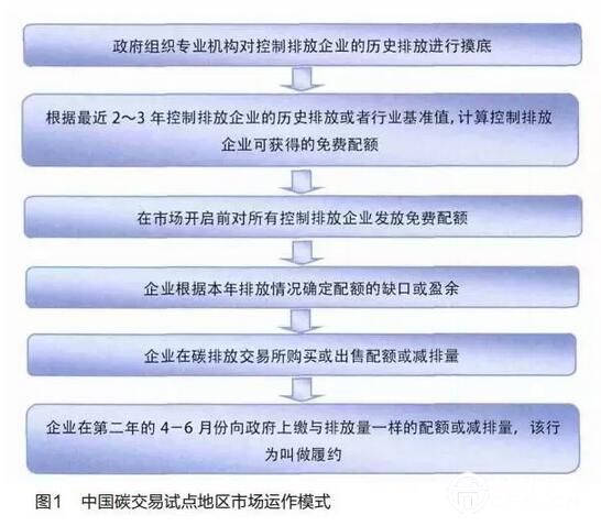 中國(guó)碳交易試點(diǎn)地區(qū)市場(chǎng)運(yùn)作模式大體與歐盟相似(見圖1)。